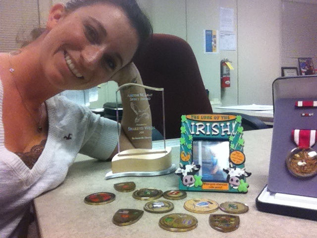 Please pardon the quality of the image, again it's from my iPhone. My 13 things? My job accomplishments. Numerous military coins from VIPs ranging from first sergeants to 3 star generals in the Army. I also received a medal for winning the Army Reserve journalism/photography competition. I also was given the highest award my first year working with Fayetteville Publishing. And of course, my biggest accomplishment, my son. You can't see the pic of him very well, but he's in the Irish frame. I met my husband in the Army, got pregnant in the Army, and am still in the Army as well as work with the Army, so I consider him a job accomplishment. Being a mom is a 24/7, round the clock job. And I wouldn't have it any other way.