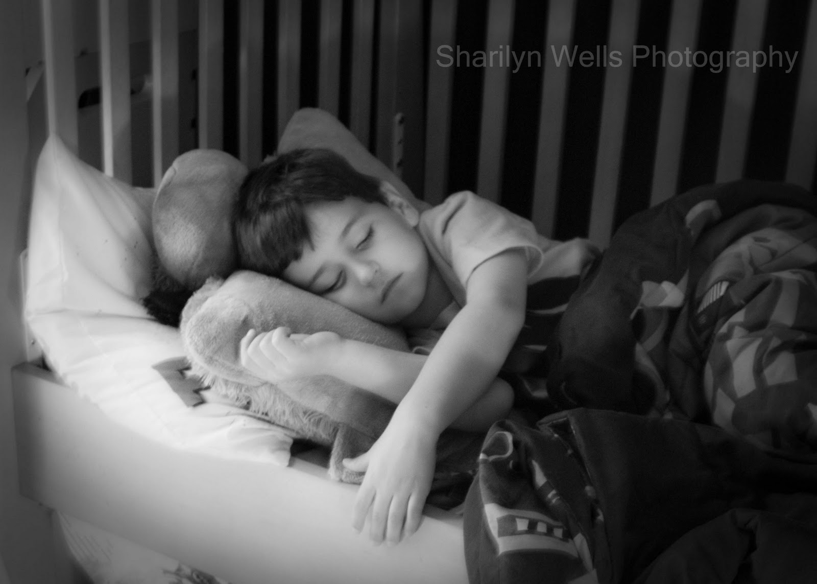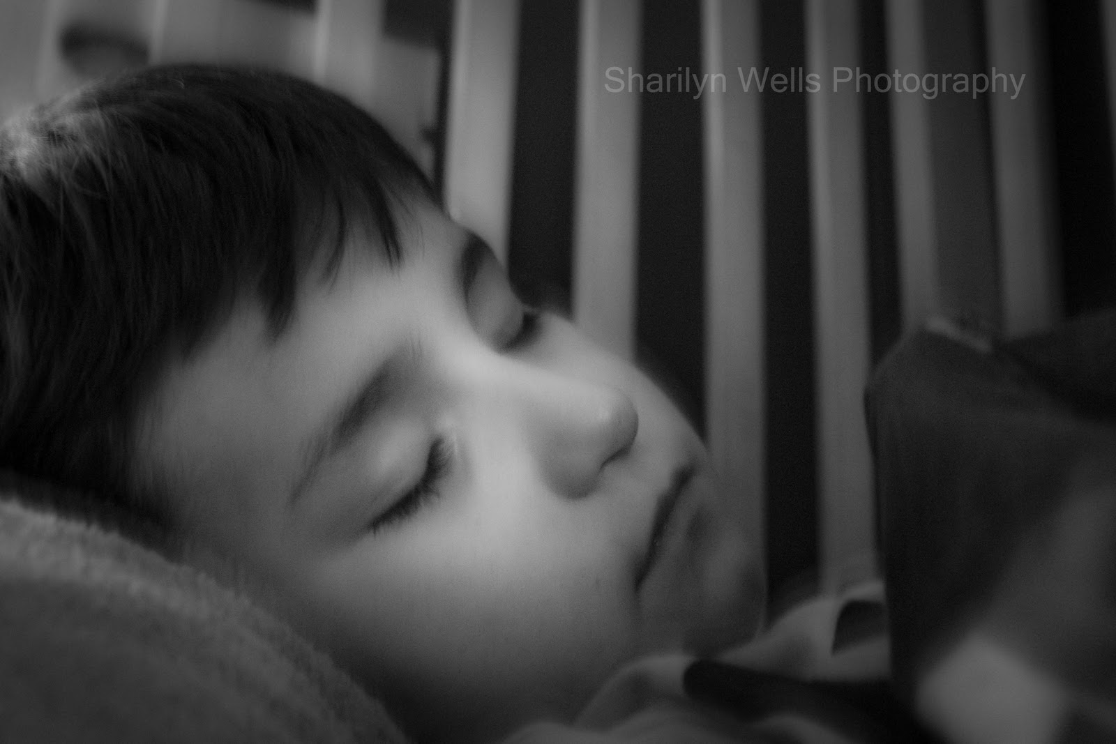 I tried to hand hold the camera with my left hand, while I painted with my right... didn't work out so good. Don't ask me why I didn't use my tripod, call it laziness. But being hand held, I was pretty impressed. The black and white adds to the feel of the photo as well. My son was sleeping so peaceful, this is the only time he is in one place longer than two minutes! LOL