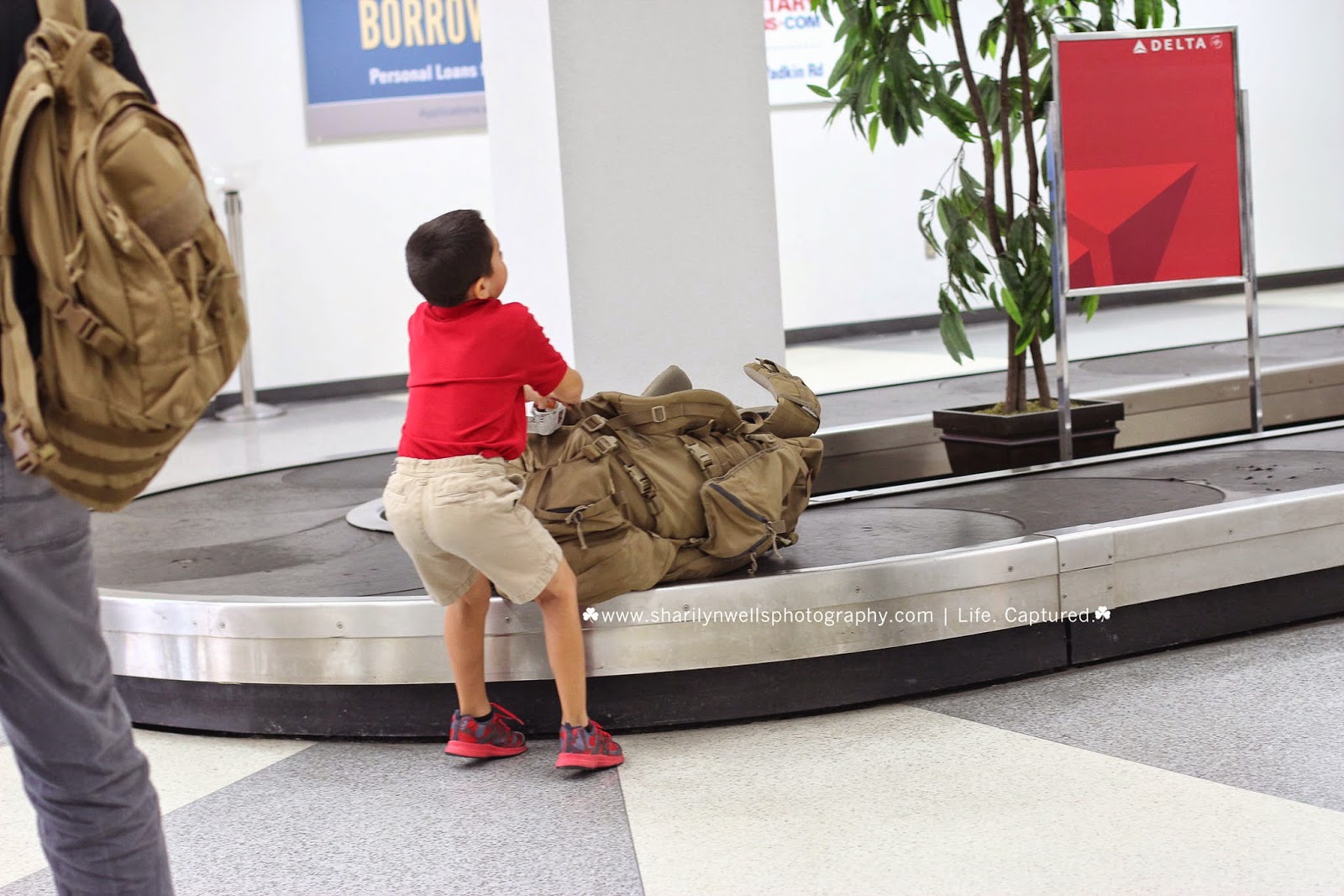 Out of breath, but happy I wasn't stalking a stranger, I began photographing the family's reunion. LOL lil' sister was still a little bewildered, but big brother was just SOOO happy Daddy was home!