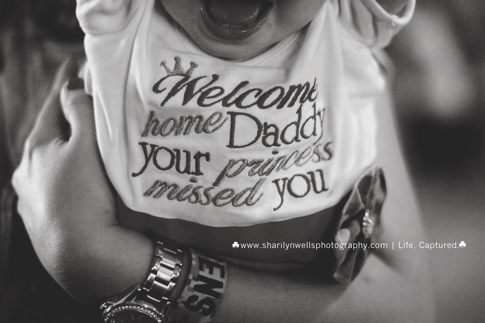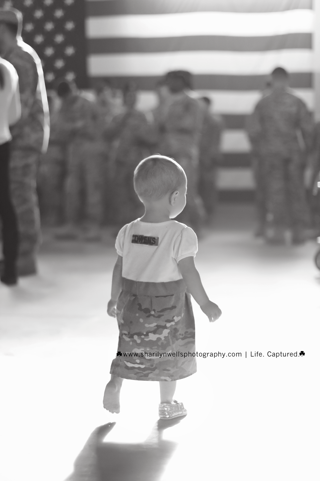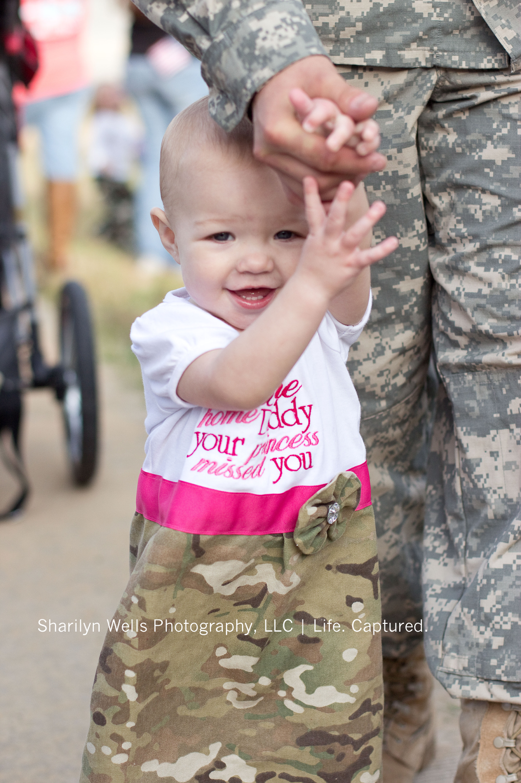 This little girl was just the sweetest thing ever! When Daddy deployed she was just a little bitty baby. I could tell he was proud to be the daddy of a little girl just by the story her momma told me. Before leaving, he had bought his baby girl sparkly, pink, Toms that were WAY to big, but couldn't resist the chance to buy the incredibly girlie shoes for her. <3 sigh. So sweet right? WELL, fast forward months of deployment ... Momma wanted to make sure baby girl was wearing those shoes for daddy's return. Still a tad to big, baby girl sported them around, kicking them in the air, throwing them watching them sparkle in the sun ... walking around with only one on ... You get the picture. LOL I love it. And such a sweet story!