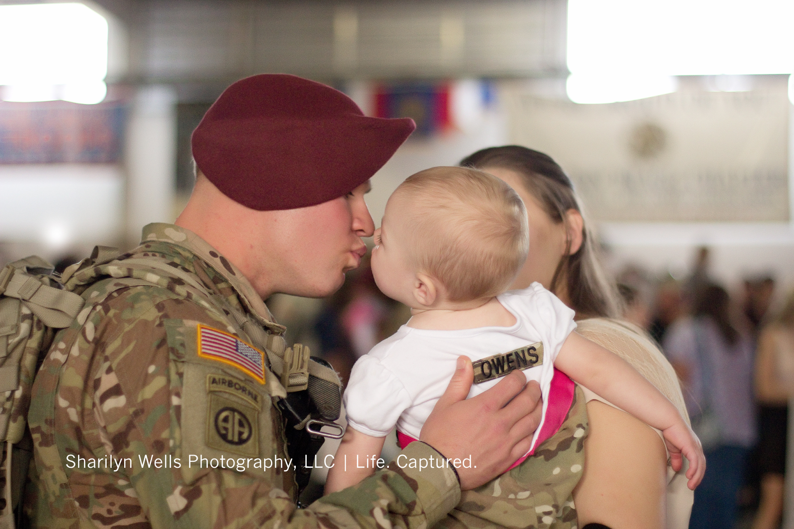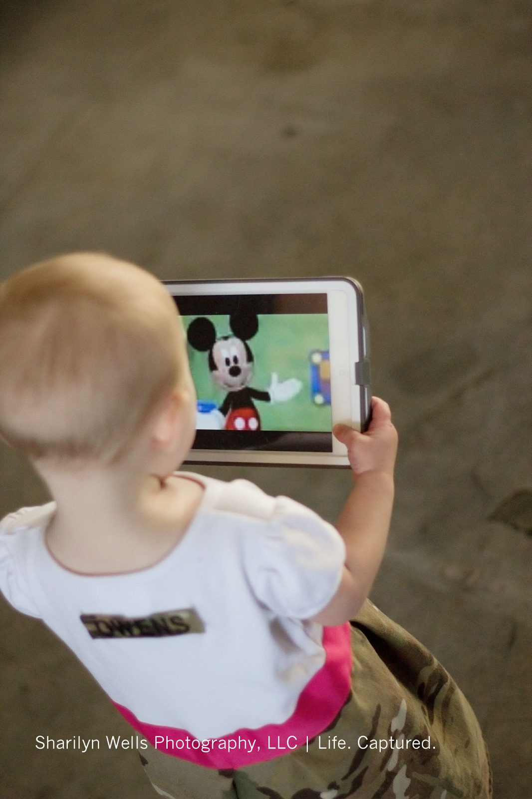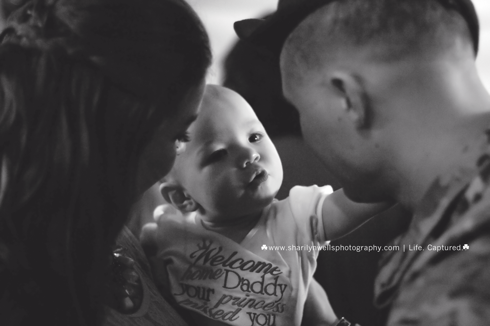 This little girl was just the sweetest thing ever! When Daddy deployed she was just a little bitty baby. I could tell he was proud to be the daddy of a little girl just by the story her momma told me. Before leaving, he had bought his baby girl sparkly, pink, Toms that were WAY to big, but couldn't resist the chance to buy the incredibly girlie shoes for her. <3 sigh. So sweet right? WELL, fast forward months of deployment ... Momma wanted to make sure baby girl was wearing those shoes for daddy's return. Still a tad to big, baby girl sported them around, kicking them in the air, throwing them watching them sparkle in the sun ... walking around with only one on ... You get the picture. LOL I love it. And such a sweet story!