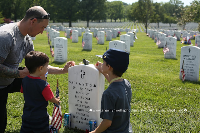 After watching the 'Rolling Thunder' motorcycles drive through D.C. in honor of fallen service members, we finally walked into the cemetery and visited our own fallen friends who lay at rest on those hollowed grounds. We explained their stories to our sons and paid our respects to not only them but to the other men and women who lay there.
