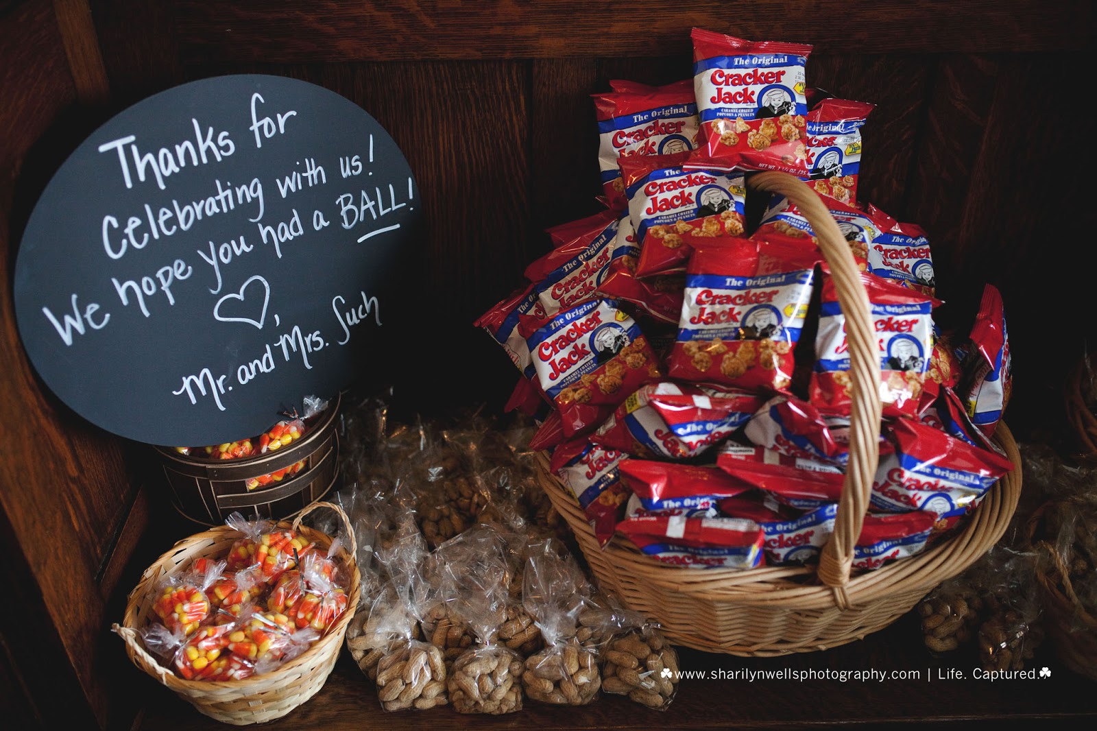 Because he's a baseball player and they had many "dates" on the baseball field and stands as she rooted for him, they of course added a baseball theme to their wedding. I mean, how cool right?!
