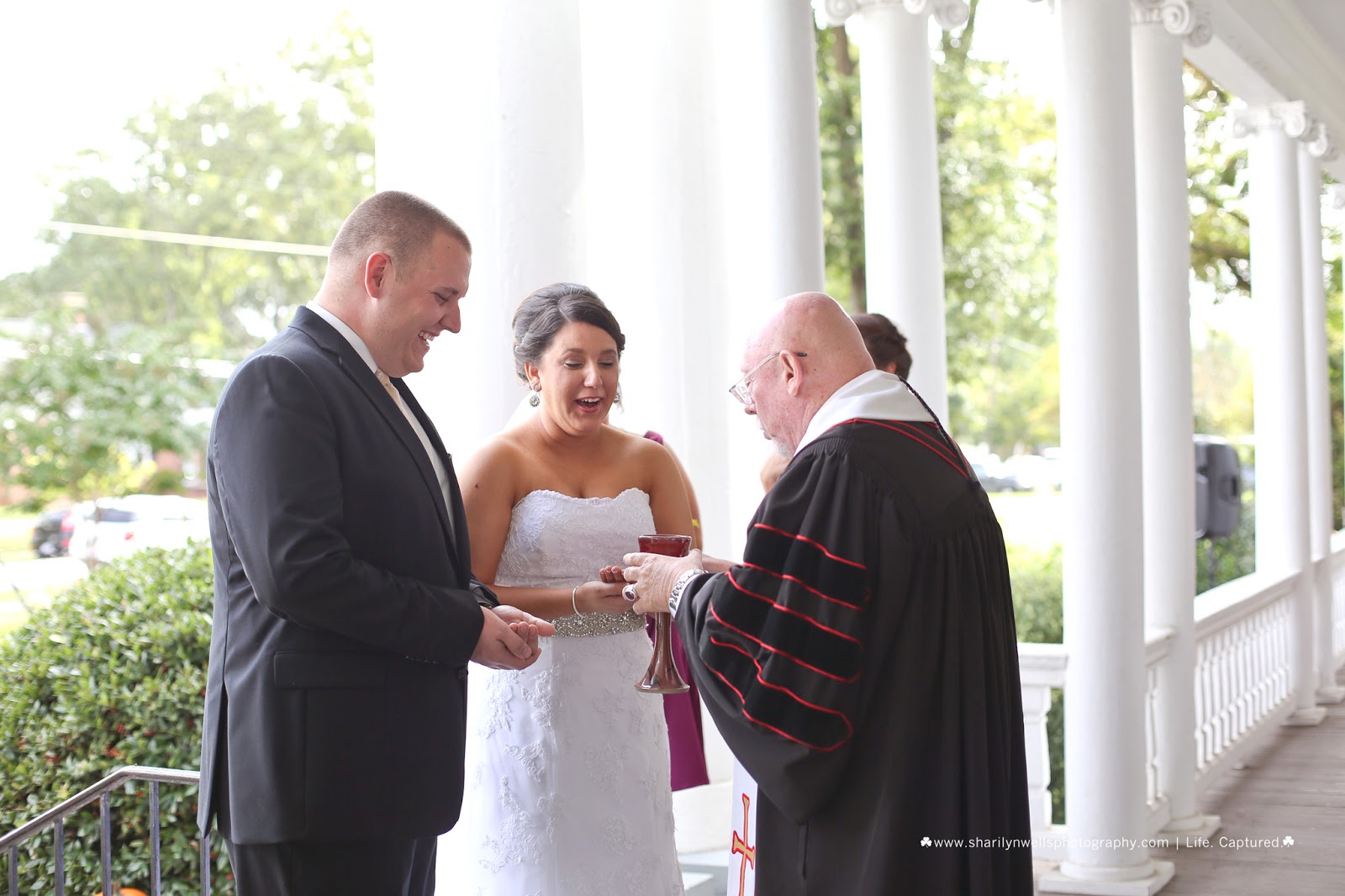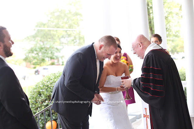 The groom quickly swooped it out, they giggled, and continued on with their first communion as husband and wife.