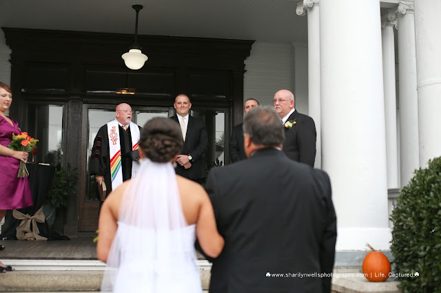 But as the bride walked out with her father, the sun literally burned through the clouds and all of a sudden, the skies were blue. You can't tell in this picture because again, this sent Tysha and I frantically moving to fix out settings to get this epic ceremony,