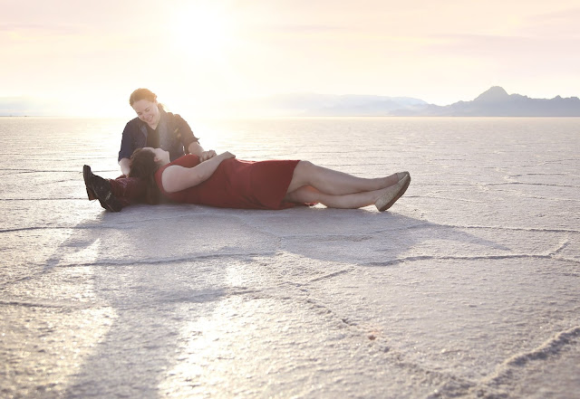 It was windy and it was cold for the salt flats, but they were troopers and the photographs I got of them were PERFECT. The storm clouds really made the portrait ... but I mean, Allie's smile warmed us all up and Heather's laugh made the cold seem to disappear while we were out there.
